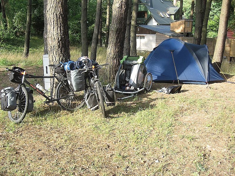 Nur noch ein kleine Impression vom unserem Campingplatz in Waldsieversdorf. Das Finden von Campingplätzen war problematisch, die Karten (auch eine aktuelle Karte!) hatten welche eingezeichnet, wo keine mehr waren und dann fanden sich plötzlich Campingplätze, wo keine eingezeichnet waren. Teilweise wussten selbst die Touristeninformationen nicht so wirklich, ob in ihrem „Betreuungsgebiet“ Zeltmöglichkeiten zu finden sind. Erstaunlich war auch der Unterschied zwischen dem Oder-Neiße-Radweg und unserer Route, auf dem ONR haben sich die Anbieter in den Orten mit vielfältigen Angeboten auf die Radtouristen eingestellt, auf unserer Route war es noch sehr überschaubar.