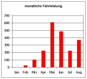 Tja, stark schwankende Leistung dieses Jahr, jedenfalls bisher. Dennoch bin ich schon jetzt recht zufrieden, die gesamte Fahrleistung beträgt in diesem Jahr bereits mehr als 2.000 Kilometer, im vergangenen Jahr hatte ich insgesamt nur 1.500 Kilometer.