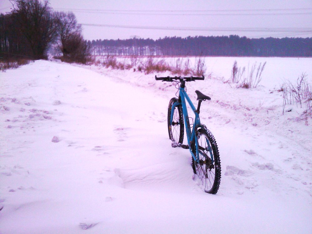 Zum Foto: Das Rad steckt in einer Schneewehe, genau auf der Mitte der Straße…Autos kommen hier nicht mehr durch.