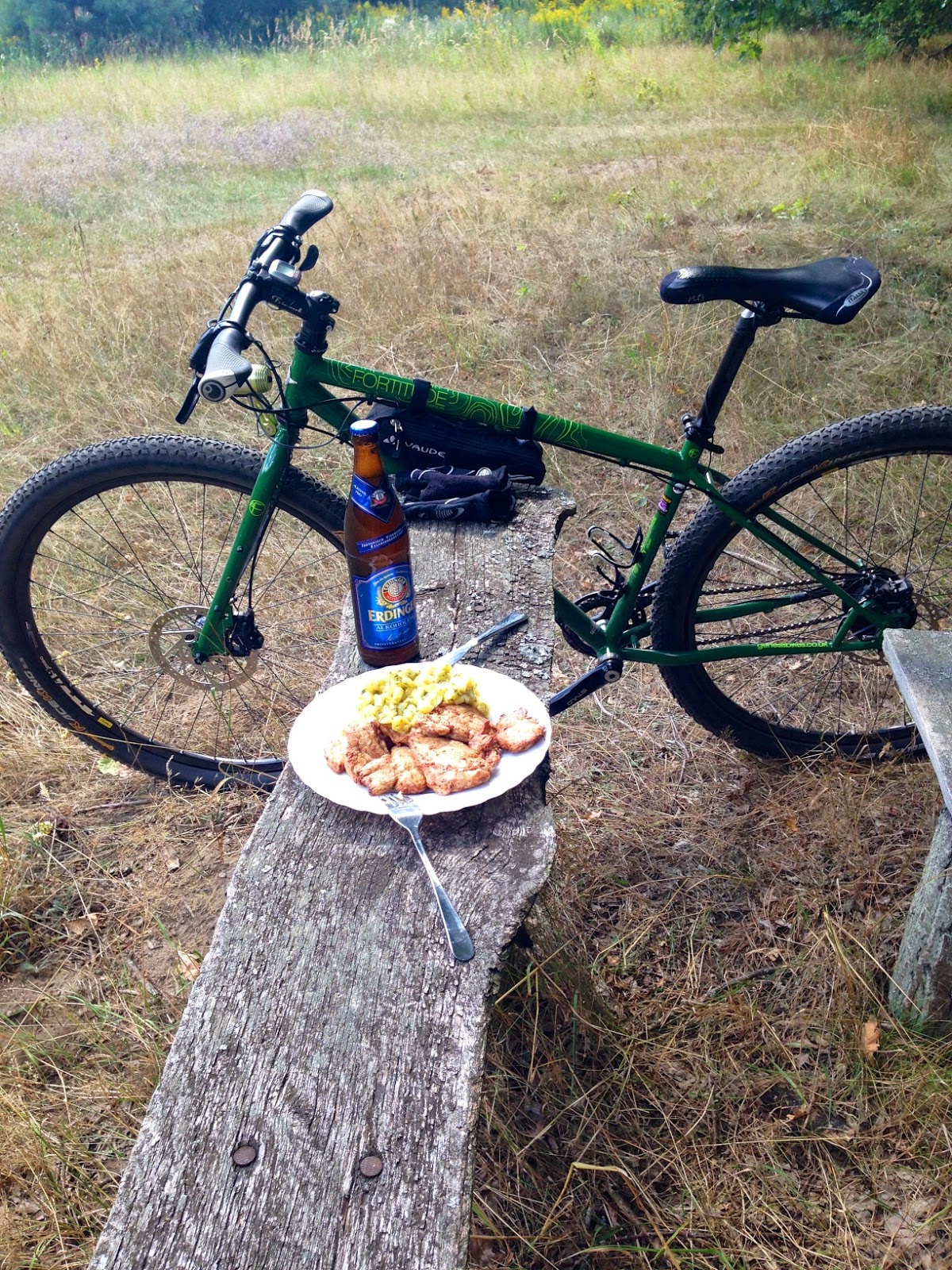 So ein Rad taugt ja nicht nur zum Sporttreiben oder als Verkehrsmittel, sondern auch als kleines „Fluchtmittel“. Auf der anderen Seite des Teiches gibt es den Trend namens #coffeeoutside, aber ich habe heute mein Mittagessen in den Wald verlagert und den kleinen Tapetenwechsel sehr genossen! Könnte ich eigentlich öfter machen…