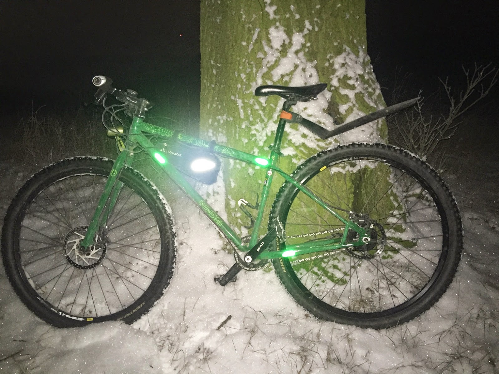 Über Nacht ist dieses weiße Zeug heruntergekommen, ungefähr 10 cm, durch die Feiertage/Wochenende gibt es keinen spürbaren Winterdienst. Nur mäßig motiviert ziehe ich die schweren Kenda-Spike-Reifen auf´s Stollenrad. Damit absolviere ich dann 36 Kilometer, Strava rechnet eine durchschnittliche Leistung von 47 Watt aus, meine Beine fühlen sich komplett anders an. Durchschnittstempo: 13 km/h. Wie würden sich eigentlich andere Spikereifen fahren? Oder eines dieser Fat-Bikes?