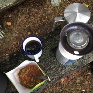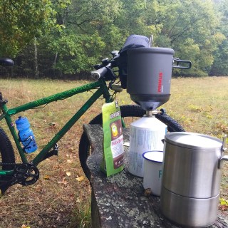 Habe heute die Mittagspause wieder nach draußen verlegt. Fünf Kilometer matschige Waldwege bis zu einer Lichtung am Wanderweg E11 irgendwo im Wald bei Strausberg, aber man lässt den Büroalltag hinter sich, die grauen Wolken sehen durch das Fenster noch viel betrüblicher aus… So gab es heute „Fertigsuppe“ und frisch gebrühten Kaffee. Wo ist eigentlich der Unterschied zwischen der „Expeditionsnahrung“ und den äußerlich ähnlichen Produkten wie „Heiße Tasse“ oder den bekannten „5-Minuten-Terrinen“?