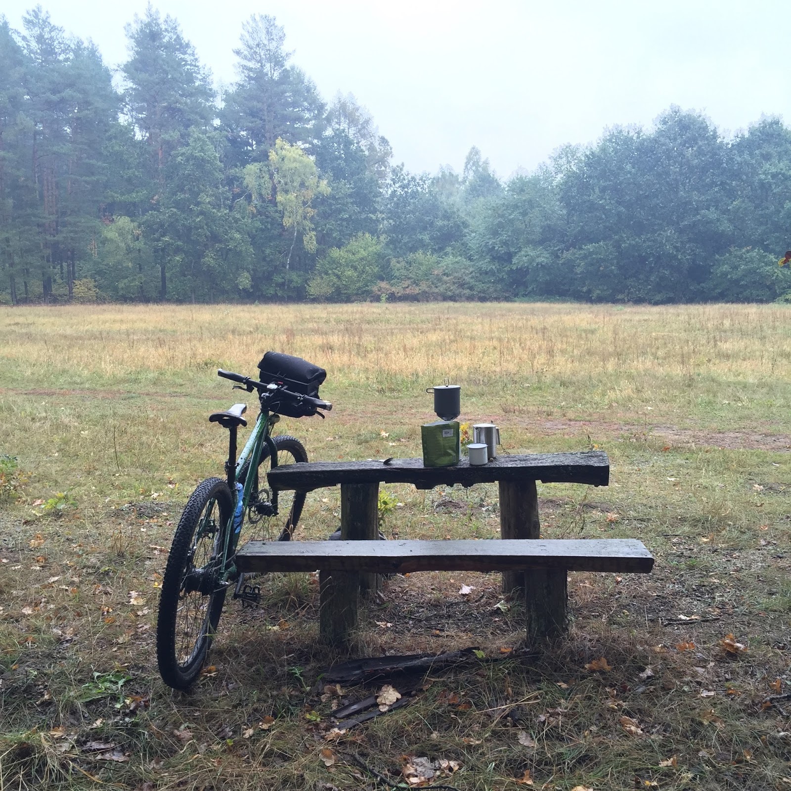 Habe heute die Mittagspause wieder nach draußen verlegt. Fünf Kilometer matschige Waldwege bis zu einer Lichtung am Wanderweg E11 irgendwo im Wald bei Strausberg, aber man lässt den Büroalltag hinter sich, die grauen Wolken sehen durch das Fenster noch viel betrüblicher aus… So gab es heute „Fertigsuppe“ und frisch gebrühten Kaffee. Wo ist eigentlich der Unterschied zwischen der „Expeditionsnahrung“ und den äußerlich ähnlichen Produkten wie „Heiße Tasse“ oder den bekannten „5-Minuten-Terrinen“?