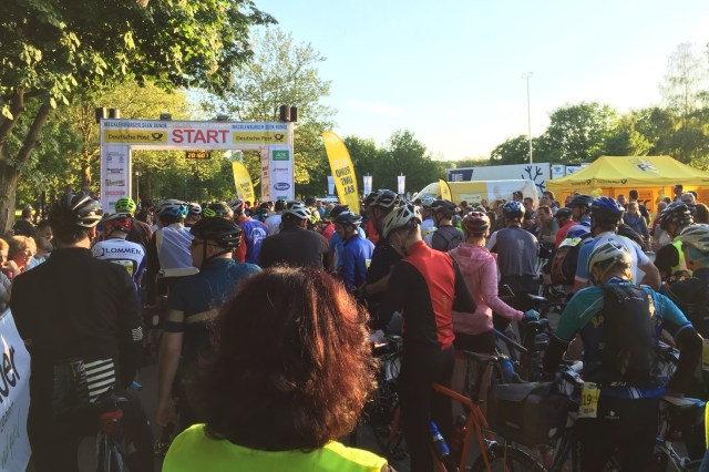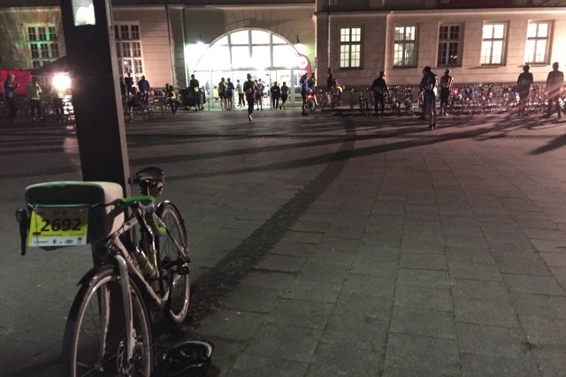 Hatte mich bewußt für die Nachtfahrt entschieden, ein Start irgendwann nach 20:00 Uhr. Lt. Ausschreibung sollen die Räder ja alle Licht haben, ich rechnete also mit einem kurzen Check. War nicht der Fall. Ich rechnete auch mit einer Startblock“Kontrolle“ ähnlich wie beim Velothon in Berlin, war auch nicht der Fall. Andere waren unruhiger, ich bin 10 Minuten später auf den Kurs gekommen, als eigentlich vorgesehen, aber hey.