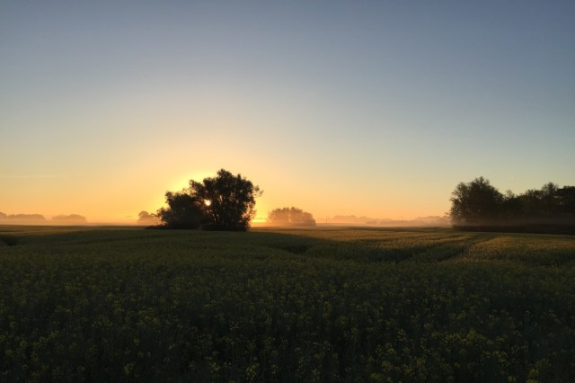 Zwischendurch zeichnet sich zweimal deutlich der Umriss eines Chausseehauses an der Straße ab, allerdings ist es für Fotos noch viel zu dunkel. Und so richtig merke ich mir die Standorte auch nicht, bin zum Radeln hier. Der Horizont wird wieder heller, dank meiner Alleinfahrt kann ich das die nächsten zwei Stunden intensiv wahrnehmen. Wundervolle Momente!
