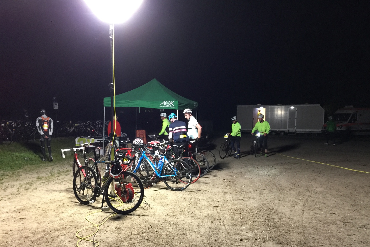 Hatte mich bewußt für die Nachtfahrt entschieden, ein Start irgendwann nach 20:00 Uhr. Lt. Ausschreibung sollen die Räder ja alle Licht haben, ich rechnete also mit einem kurzen Check. War nicht der Fall. Ich rechnete auch mit einer Startblock“Kontrolle“ ähnlich wie beim Velothon in Berlin, war auch nicht der Fall. Andere waren unruhiger, ich bin 10 Minuten später auf den Kurs gekommen, als eigentlich vorgesehen, aber hey.