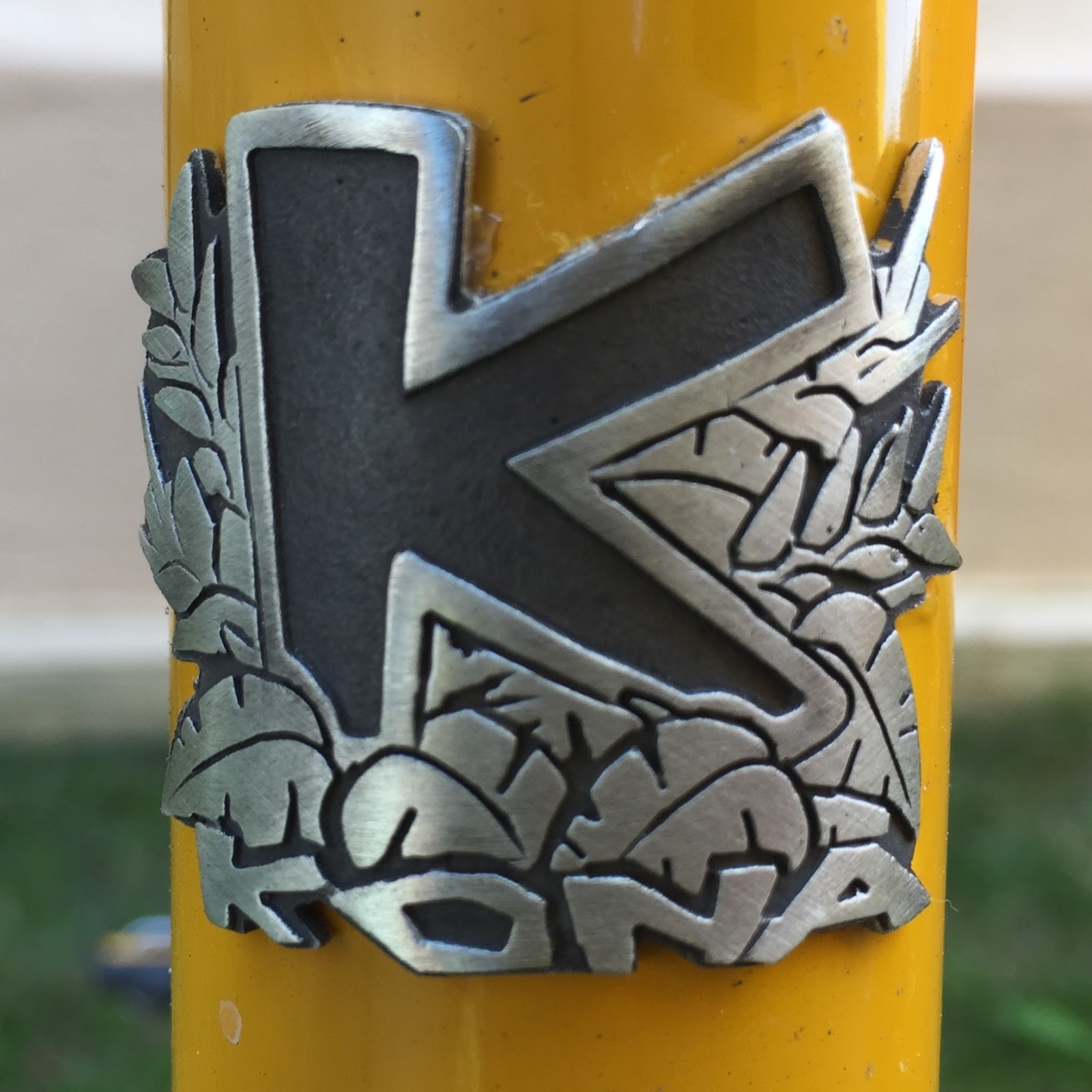 Früher (tm) waren an jedem Fahrradrahmen entsprechende Markenschilder am Steuerrohr verbaut, die Rahmen waren sich sehr ähnlich und die Farbgebung nicht so bunt wie heute. Aktuell wird sehr viel mit Rahmenformen, geformten Rohren und kräftigen Farben gearbeitet bzw. gespielt und sich von der Konkurrenz unterschieden. Vorne auf dem Steuerrohr sind meist nur noch Aufkleber, die das Herstellerlogo mehr oder weniger komplex darstellen. „Richtige“ Schilder aus Metall sind meist auf Stahlrahmen zu finden, unten gibt es eine kleine Auswahl. Oder man wendet sich an kleine Anbieter, die quasi wie Juweliere die Schilder auf Wunsch anfertigen…