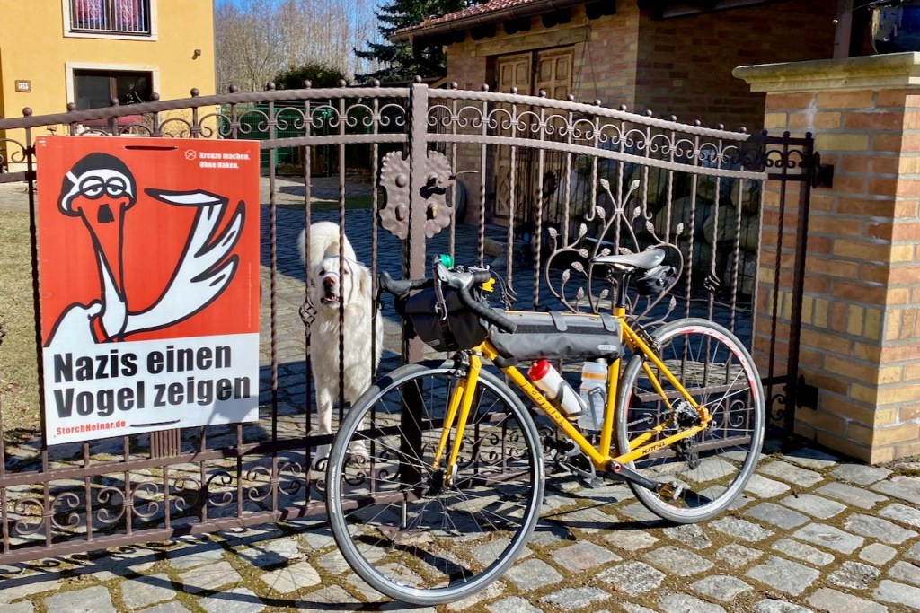 Der Tag auf dem Rad verläuft relativ „ereignislos“, aber das war ja das gewünschte Ziel. Ich rolle gleichmäßig und ohne Hast durch Brandenburg, bis auf einen bayrischen Autofahrer gibt es auch von den anderen Verkehrsteilnehmern kein Streß. Mache viele kleine Pausen für Fotos, fürs Wasserlassen, für das Anpassen der Bekleidung an die Temperaturen. Lerne meinen Garmin noch besser kennen (Energiesparmodus….) und weiß auch, warum Garmin Geräte mit großem Display anbietet. Weil meine Augen schlechter werden und ich manche Angaben unterwegs nicht mehr so gut lesen kann und die Lesebrille zu Hause liegt/unterwegs unpraktisch wäre.