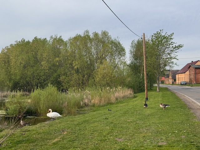 Bis Schwedt (km 110) rollt es sehr gut, bin in dem gewünschten Zeitfenster…. dann lässt mein Elan nach…. kriege teilweise unsinnige Anrufe, die problemlos eine Nachricht oder Email hätten sein können… stoppe für Fotos, fürs Rumdaddeln auf dem Telefon, sitze vorm Supermarkt in Pasewalk und esse Snickers…die Leichtigfüßkeit fehlt mir komplett….